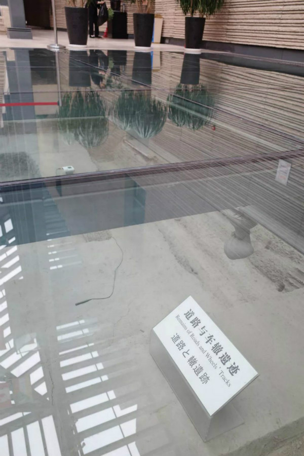 ▲ 博物館就建在西市遺址上,石橋兩側(cè)的車轍還在,遠(yuǎn)處應(yīng)該是一處店鋪建筑