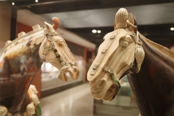 ▲ 館內(nèi)陳列著各種樣式的唐三彩大花馬