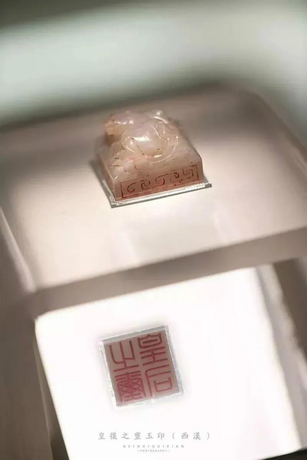 皇后之璽質(zhì)地為新疆和田的羊脂玉,據(jù)考證為呂后生前所用,是迄今發(fā)現(xiàn)唯一的漢代皇后玉璽。