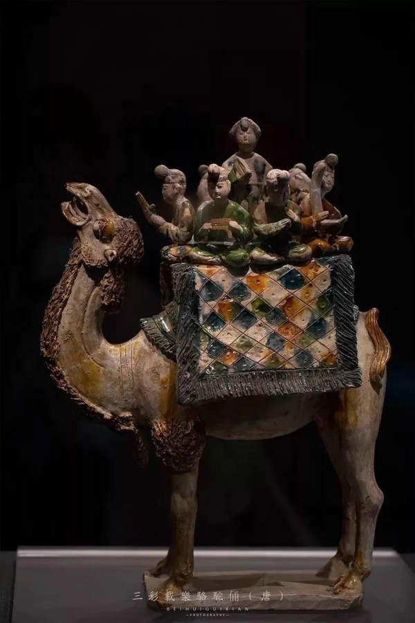 這件三彩駱駝?shì)d樂俑是盛唐時(shí)期杰出作品,代表了盛唐社會(huì)風(fēng)俗及高超藝術(shù)成就。