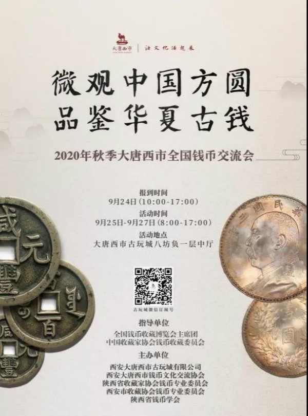 “君子愛財,取之有道。”大唐西市國際古玩城十一周年慶來臨之際,于9月25日在古玩城八坊負(fù)一層中廳舉辦錢幣專場競買會。百余件藏品等您品鑒,愿您“一舉得財”。