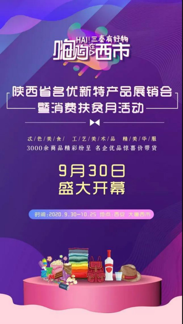 放假在即,明日下午!2020陜西省名優(yōu)新特產(chǎn)品展銷會(huì),暨消費(fèi)扶貧月活動(dòng),將在大唐西市金市廣場(chǎng)盛大啟幕!來(lái)自全省12個(gè)地市,精選的300家知名品牌企業(yè),3000種獨(dú)具地方風(fēng)味的名優(yōu)產(chǎn)品,放假了,還不速速速約起!