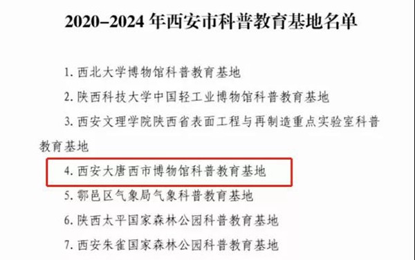 精彩遠(yuǎn)不止這些,近日,大唐西市博物館還被認(rèn)定為,“2020—2024年西安市科普教育基地”。