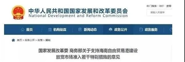 4月8日,經(jīng)黨中央、國務(wù)院同意,國家發(fā)展改革委、商務(wù)部召開專題新聞發(fā)布會(huì),公開發(fā)布《關(guān)于支持海南自由貿(mào)易港建設(shè)放寬市場準(zhǔn)入若干特別措施的意見》,提出五大領(lǐng)域22條具體措施,促進(jìn)生產(chǎn)要素自由便利流動(dòng),加快培育國際比較優(yōu)勢產(chǎn)業(yè),高質(zhì)量高標(biāo)準(zhǔn)建設(shè)自由貿(mào)易港。