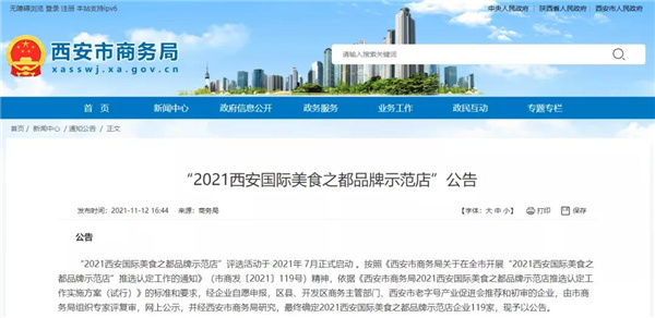 2021西安國(guó)際美食之都,年度品牌示范店,正式公告發(fā)布啦!大唐西市酒店,榜上有名!