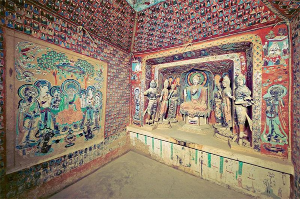 敦煌莫高窟1961年由國(guó)務(wù)院公布為第一批全國(guó)重點(diǎn)文物保護(hù)單位,1987年作為我國(guó)首批申報(bào)項(xiàng)目列入聯(lián)合國(guó)教科文組織世界遺產(chǎn)名錄。圖為敦煌莫高窟第322窟的壁畫和彩塑?!?guó)家文物局供圖