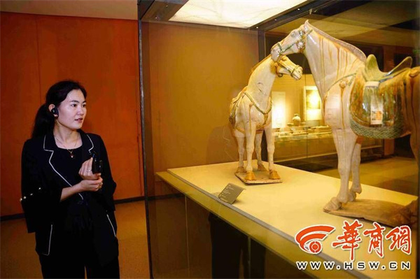 古拉麗看到唐代文物“粉彩馬”后激動地說:“想起了我們國家的馬,當(dāng)時通過絲綢之路,中國的好多東西傳到了我們那里,比如絲綢、茶葉等,我們那里的不少東西也帶到了中國,比如馬匹。我們國家現(xiàn)在都有賽馬比賽,贏得名次的選手可以獲得非常豐厚的獎勵。我也會騎馬,沒有專門練過,之前與同學(xué)一起外出,我們?nèi)ヲT馬了,工作人員介紹了騎馬要領(lǐng),我自己摸索著騎了。”