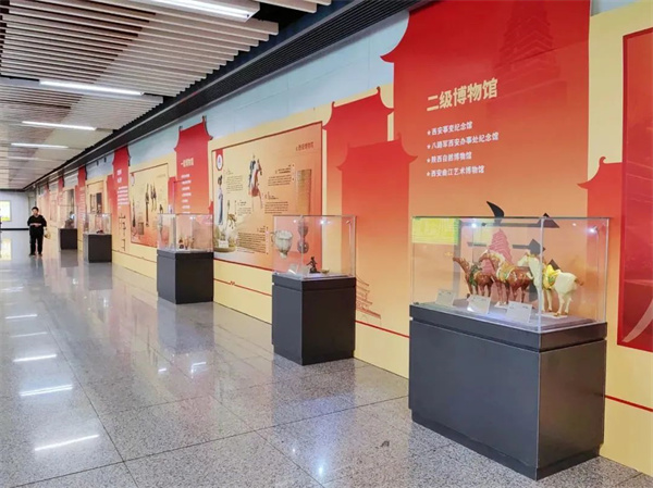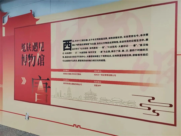 “地鐵遇見博物館”展覽分別設于西安地鐵行政中心站、大雁塔站及鐘樓站,通過文物復刻品、文創(chuàng)產(chǎn)品實體陳列及圖文介紹等形式,全方位展示周、秦、漢、唐四個時期的文物瑰寶。